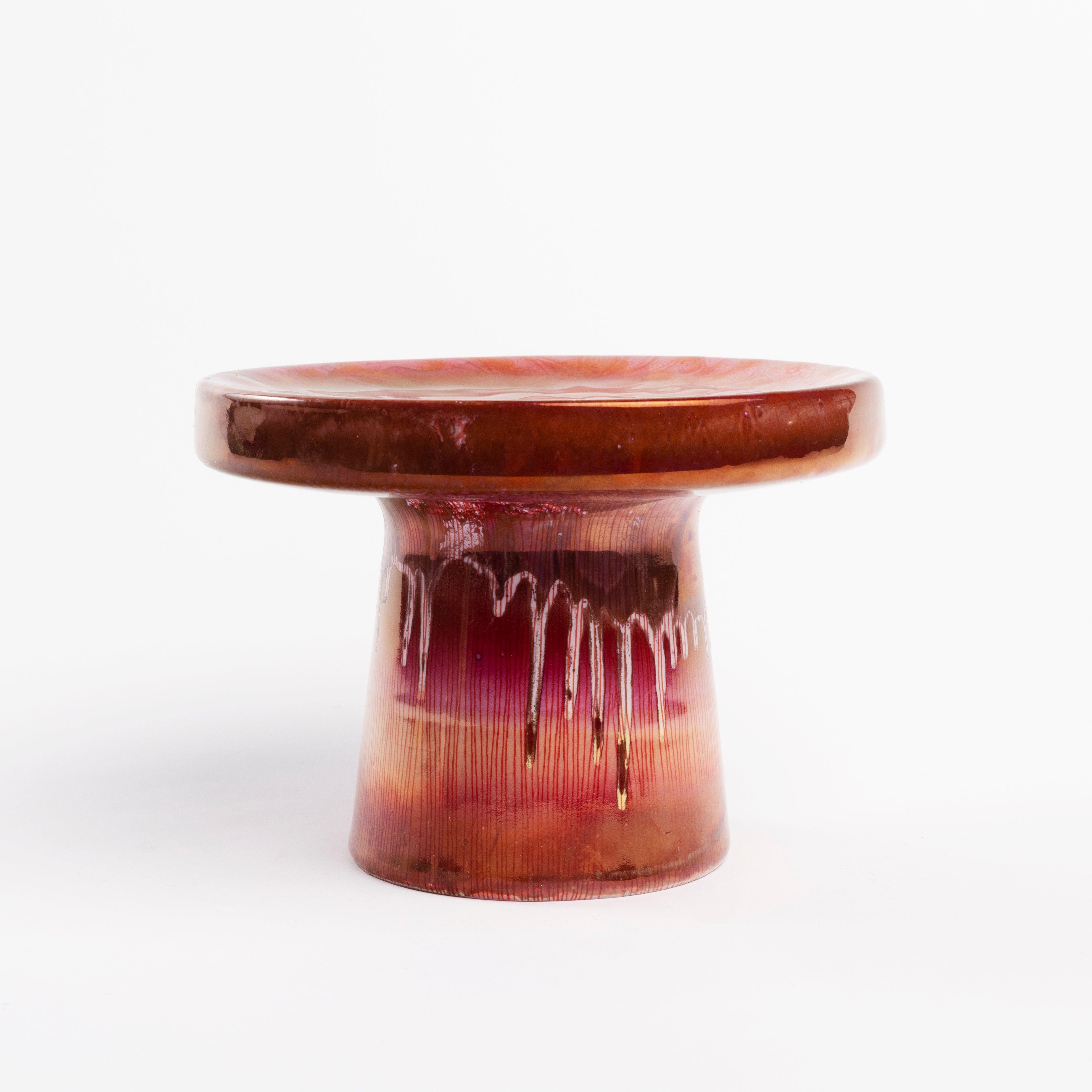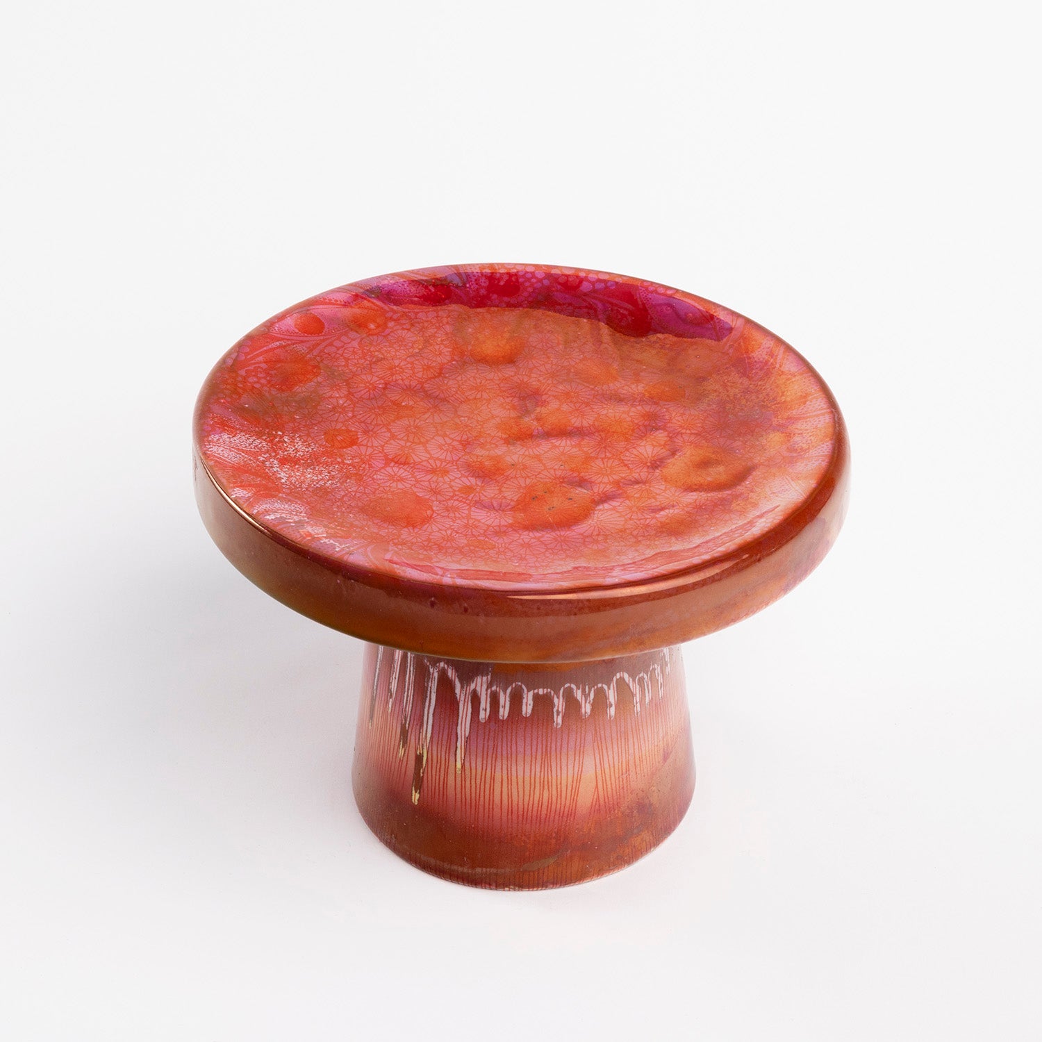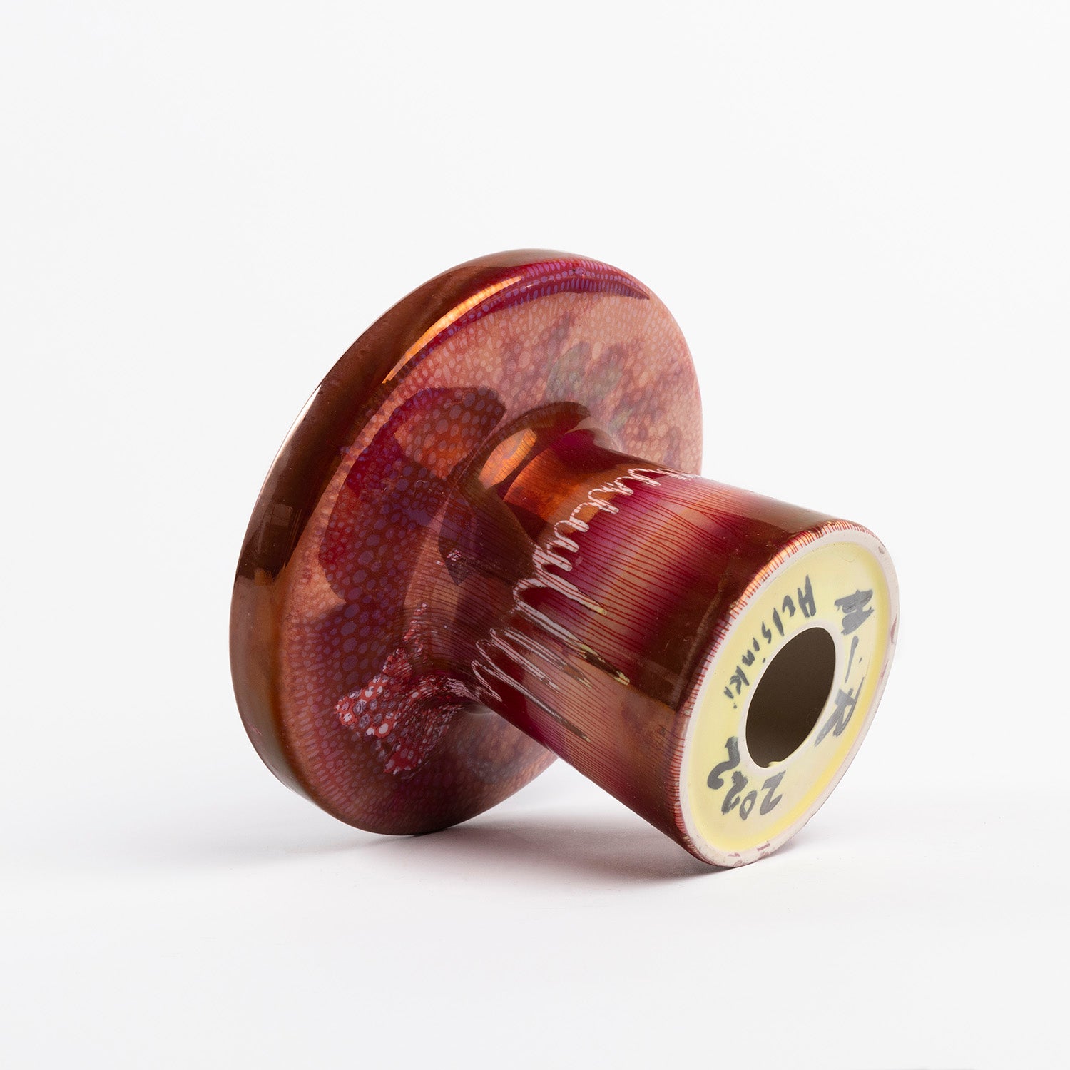 Decoration: Hand printed and cut serigraphy/monotypia, colored glaze and hand painting ruby lystre and hint of gold